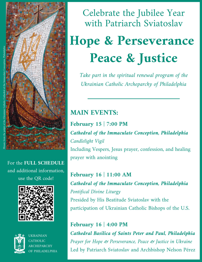 REMINDER: Major Archbishop Sviatoslav Schevchuk is in North America for the Synod of Bishops and is in Philadelphia February 15th and 16th; and Washington, D.C. February 18th. See the flyers in the vestibule, The Way or Archeparchial Website for more information.